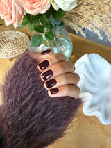 A black cherry red with fine red sparkles that add dimension and interest as the light hits. Perfect for those who prefer a subtle shimmer over a full-on sparkle gel.