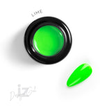 A HEMA free nail art gel in a vibrant, neon lime green.