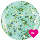 A sheer / jelly green base with terrazzo effect glitter foil flakes.