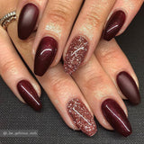 A classy deep red/brown with a hint of purple and a soft sparkle.