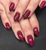 A deep red with a fine holographic sparkle & subtle violet sheen.