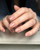 Mocha is a sheer, milky mocha with pink undertones. It is a buildable gel - apply in thin layers for a sheer effect, or layer up for more coverage and a deeper colour.