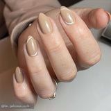 A medium creamy latte with a subtle pinky tone. Recently Reformulated for better stability and less yellow than the Calgel version due to the difference in the clear base gel.