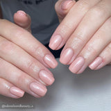 A soft pink with subtle sparkle/shimmer semi-solid finish. Can be layered for full coverage & for a deeper colour.
