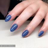 A vibrant, cobalt blue with a fine silver glitter with holographic sparkle