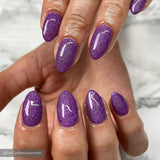 A vibrant purple with a fine silver glitter with holographic sparkle