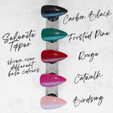 A clear topper gel with a fine frosted sparkle. Transform your existing colours by layering over a solid base for added sparkle.