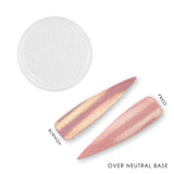 A clear iridescent glitter dust to be layered over a base colour. Over light colours it will have a golden sparklEand over dark bases it will be more green/gold. See photos for different effects.