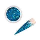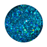 A vibrant blue/teal textured glitter mix with holographic sparkle.