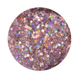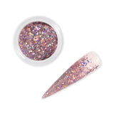A blush pink textured glitter mix with a rainbow holographic sparkle.