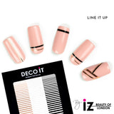 Straight line nail art in seconds. A great alternative to striping tape, these decals include rose gold, black and white stripe nail stickers.