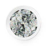 Fine Metallic Chrome Flakes in Silver with a Holographic Sparkle.
