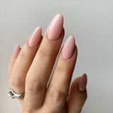 A semi-solid dusky pinky/beige. Provides more coverage than the 'sheer' finishes. On extended nails it will will be slightly sheer on the free edge to give a subtle 'ombre' like effect.