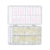 • Apply base layer of clear to half the nail & cure before securing tips with resin