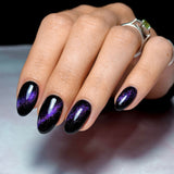 A purple magnetic / cat-eye gel that comes alive when magnetised. Watch it shine in the light transforming to a pink/golden/ blue glow.