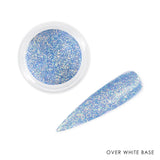 You can also apply glitters by gentle patting them onto a sticky layer of cured gel base (either colour or clear) with a sponge applicator. Dusting off any excess loose glitter using a fluffy brush before sealing with clear.