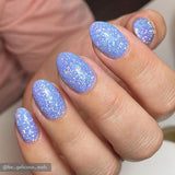 A very pale blue/lilac iridescent glitter with multicolour shimmer.